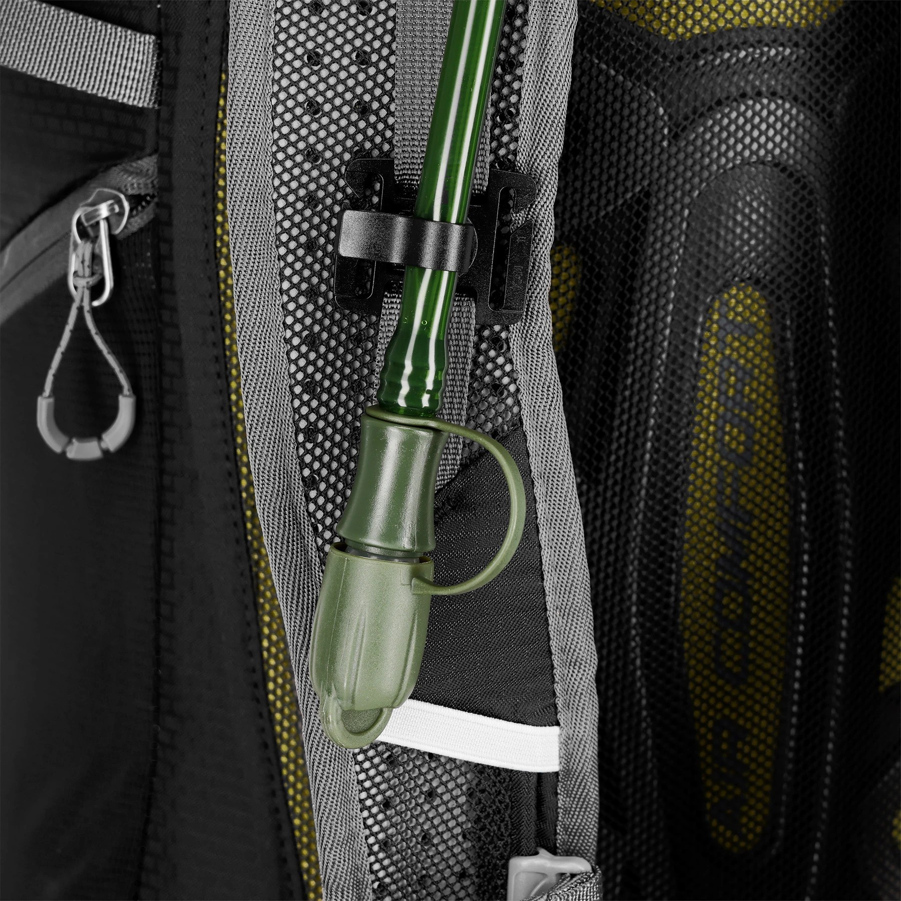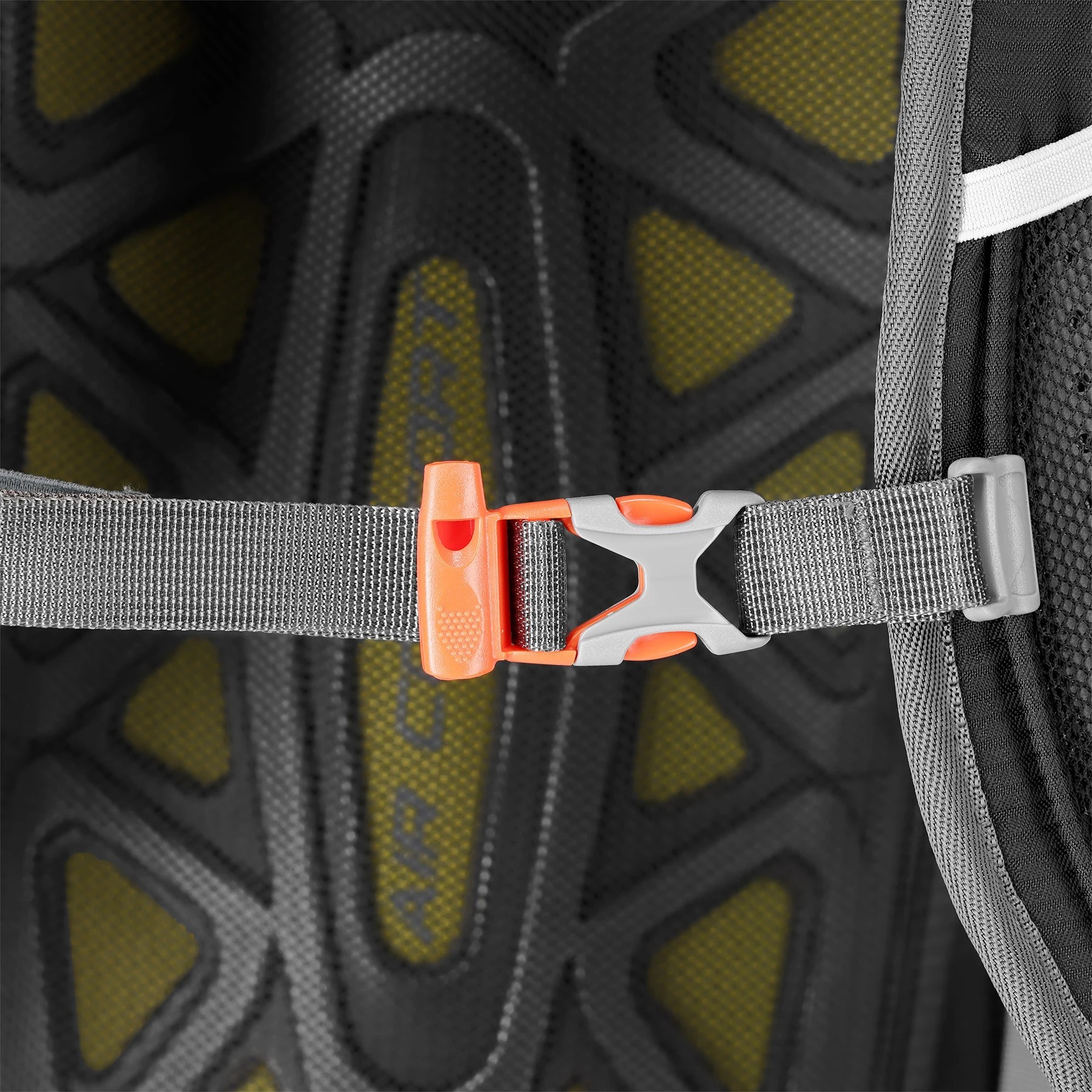 Veiligheid en bruikbaarheid -Een geïntegreerd reddingsfluitje bevindt zich op de gesp van de borstriem, wat de veiligheid in geval van nood verhoogt. De heupriem verdeelt niet alleen het gewicht gelijkmatig, maar stabiliseert de rugzak ook en biedt bovendien vakken voor kleine voorwerpen zoals snacks, sleutels en telefoon.