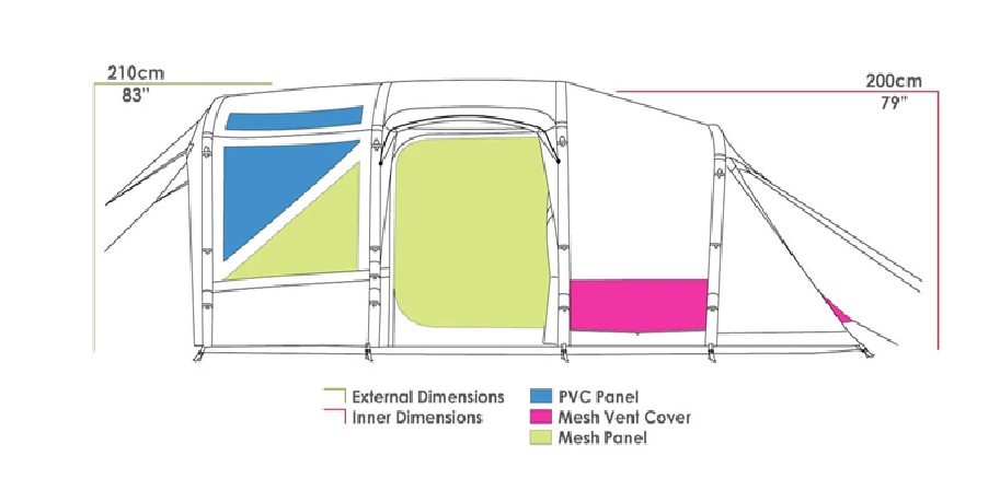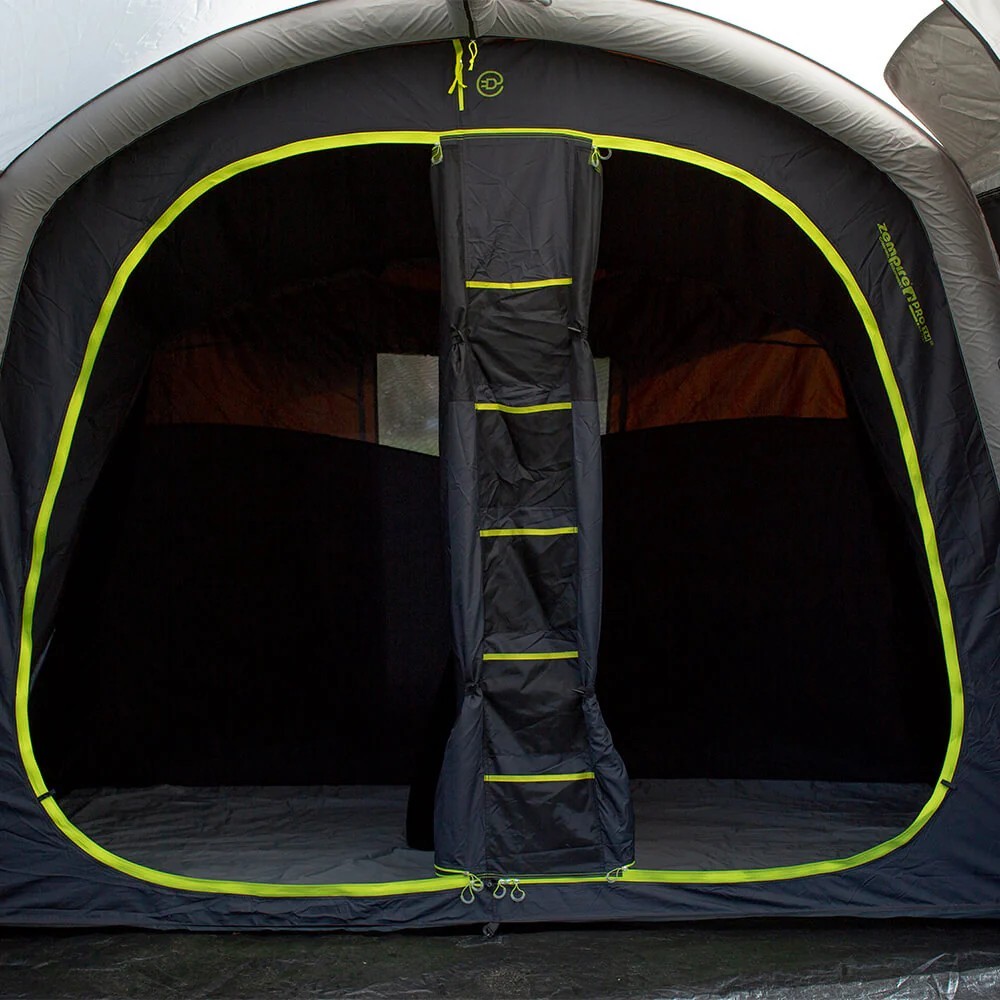 De ruime woonruimte in de tent biedt voldoende ruimte om je een vakantiegevoel te geven en te ontspannen. Ook op regenachtige dagen. Het slaapcompartiment heeft de mogelijkheid om er 2 slaapkamers van te maken.  Voor extra gemak kan de voorluifel worden aangesloten op een extra luifelwand (de Pro TM Awning Wall Set V2) of aan een Zempire Roadiebase of Probase 3 Air Shelter voor verlengd buitenleven (apart verkocht). Dit is een soort oppompbare partytent die dmv een Probase link aan de tent bevestigd kan worden waardoor er nog meer overdekte ruimte ontstaat. Deze uitbreidingen zijn als extra optie aan te schaffen. Er zijn nog 2 extra opties bij deze tent aan te schaffen. Voor extra bescherming is een Heat Shield handig, deze houd het dak schoon en geeft extra bescherming tegen de zon. Als laatste optie is het extra grondzeil (Footprint), deze beschermt het grondzeil van de tent en houd het mooi schoon.