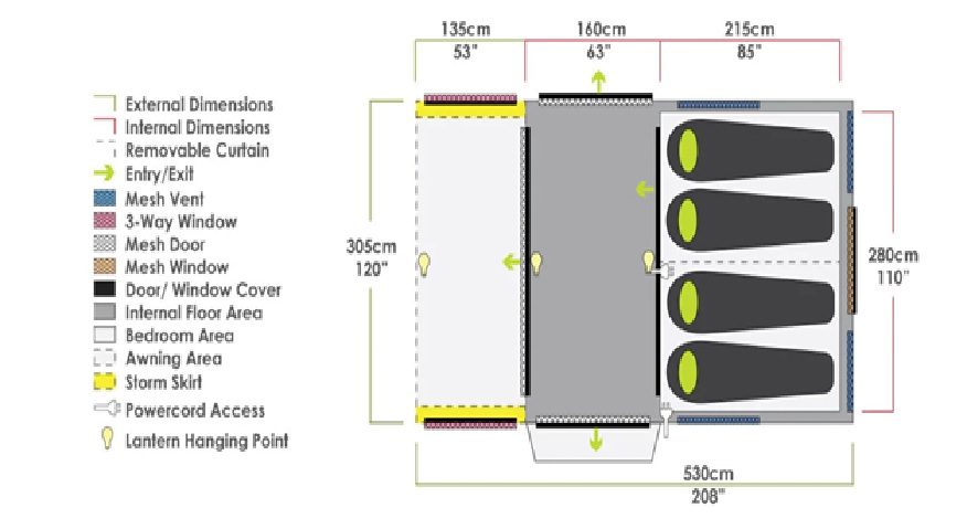 • Afmetingen luifelruimte: 3,05 x 135 cm